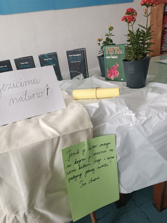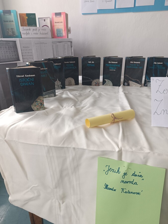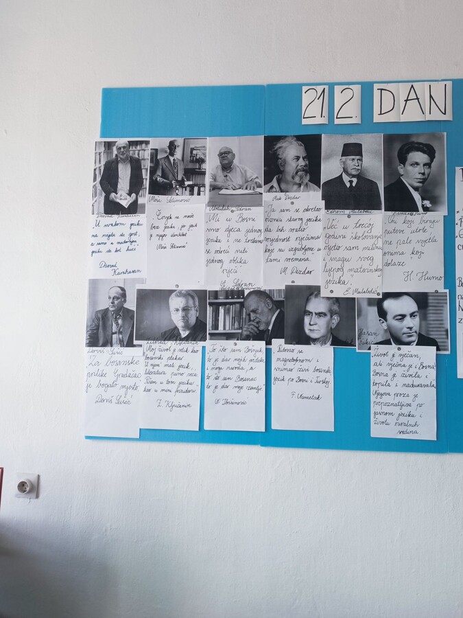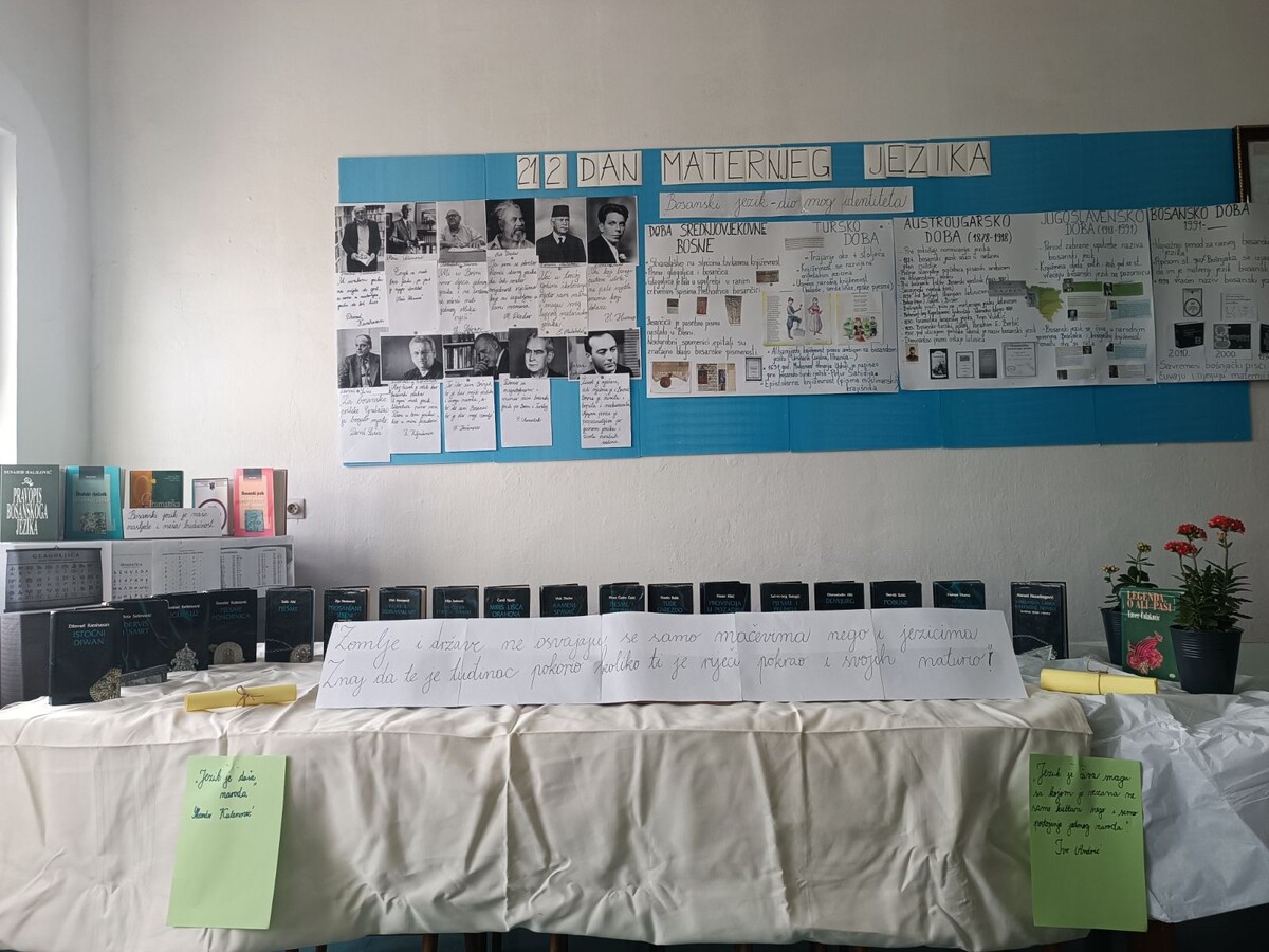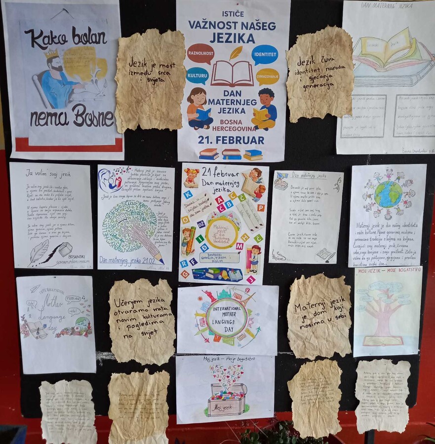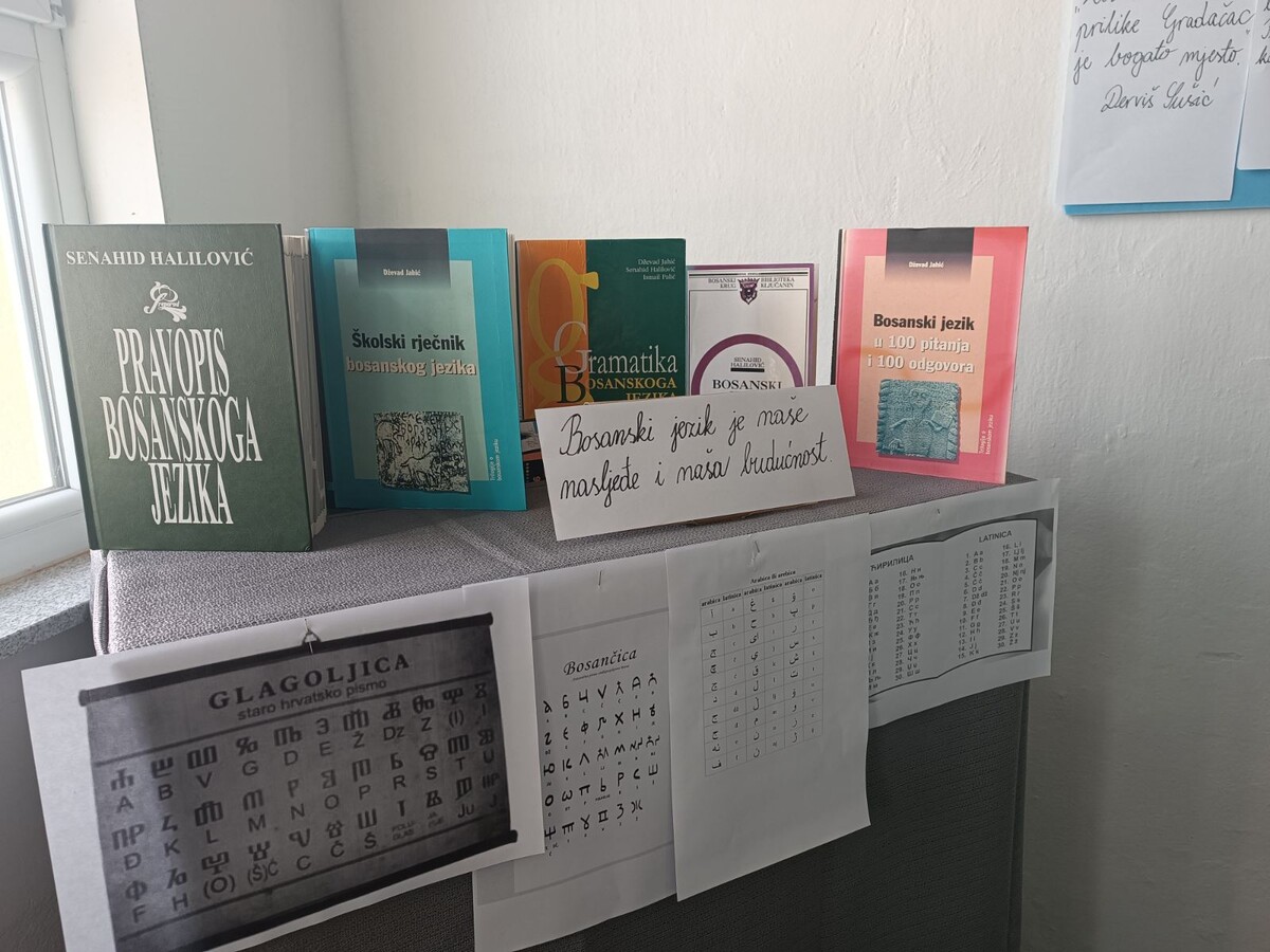 Izrađene su tematske brošure s kratkim porukama, zanimljivostima o jeziku i učeničkim radovima. Istovremeno, u prostoru škole postavljen je i naslov školskog panoa koji je vizuelno obilježio ovaj važan datum.