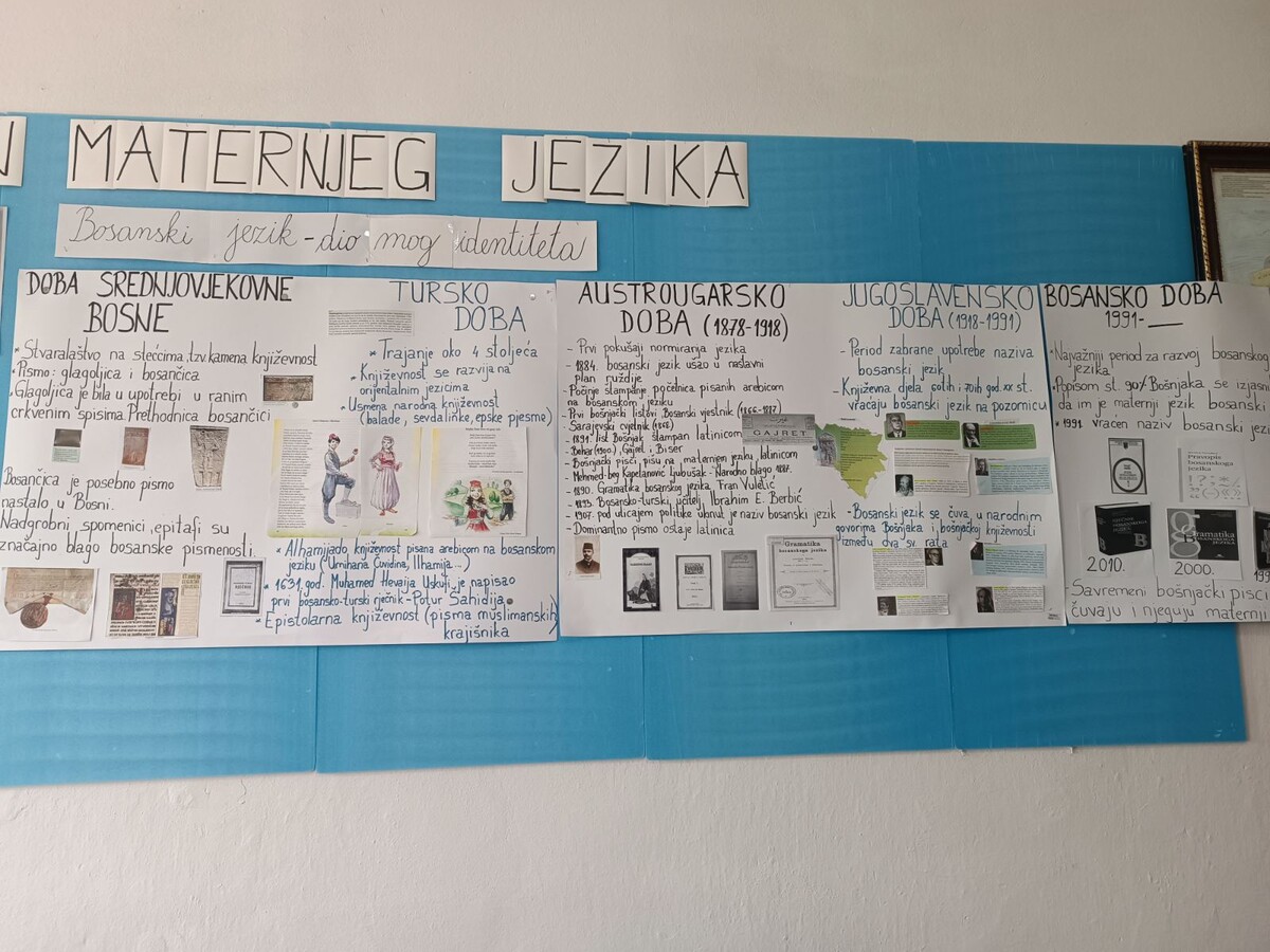 Poseban dio programa bio je historijski osvrt o razvoju i očuvanju maternjeg jezika, koji su učenici pročitali pred vršnjacima u holu škole. Uz to, prikazana je i PowerPoint prezentacija s porukama o značaju, ulozi i odgovornoj upotrebi maternjeg jezika.