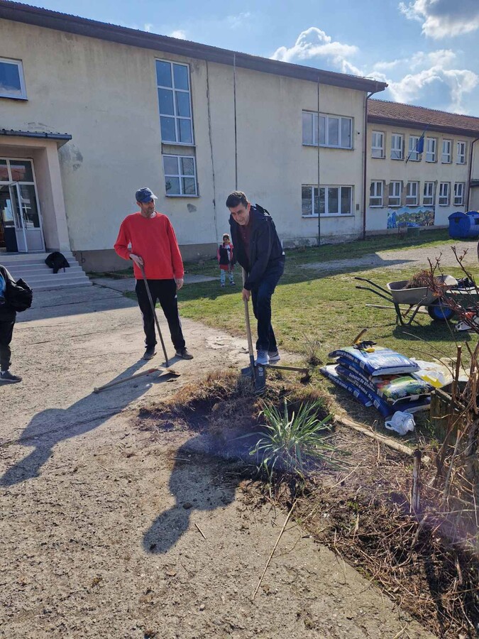 U današnjoj akciji, nakon pripreme terena i posipanja nabavljene zemlje za sadnju, zasađen je značajan broj čempresa, visokih i niskih ruža te drugog ukrasnog bilja. Školsko dvorište je dobilo novi, ljepši i uređeniji izgled, a istovremeno je napravljen važan korak ka stvaranju zdravijeg i ugodnijeg ambijenta za učenike i sve mještane.